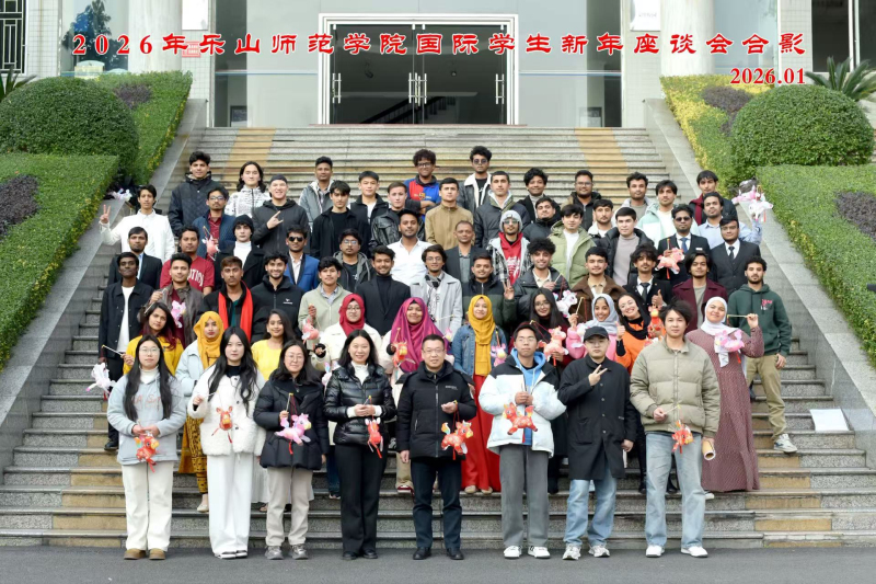 本网讯(文/孙月圆 图/崔艺蓝)2026年1月9日,乐山师范学院国际教育学院举办国际学生新年座谈会。院长邓昕、副院长蒲仕江及教师代表与来自世界各地的学子欢聚一堂,共迎新春、共话成长。