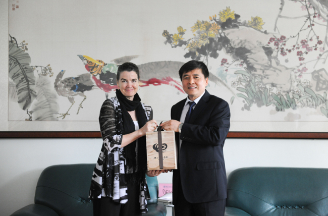 会谈结束后,艾兰女士和刁卫东副秘书长一行考察了外国语学院及志愿者住宿设施。国际处、外国语学院主要负责人及相关人员陪同会见和考察。