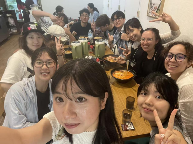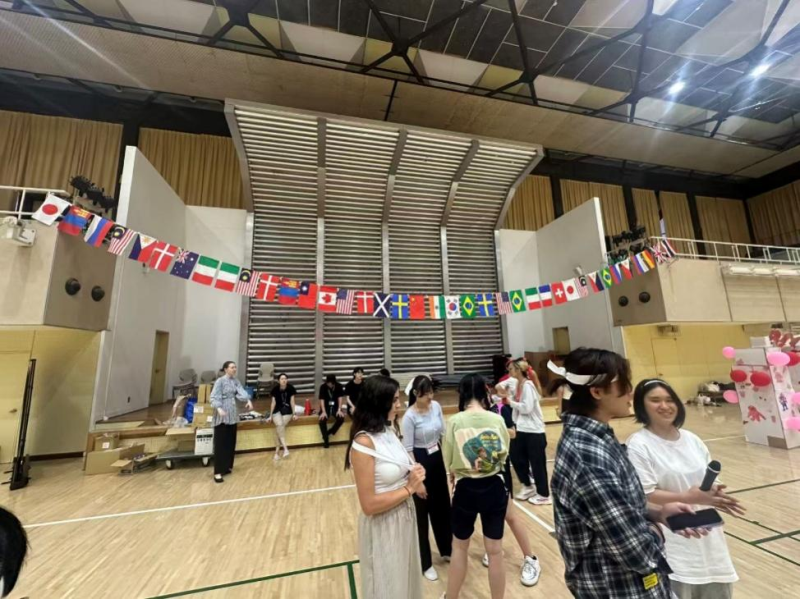 谈笑间我们抵达了学校,CUC的同学们带领我们前往宿舍。映入我们眼帘的是传统的日式榻榻米,学校贴心地为我们准备好了床单、被套和棉被。放置完行李,我们参观了宿舍设施,随后前往国际交流中心。老师们热情欢迎我们的到来,同学们轮流做着自我介绍。日本老师详细介绍了后续行程,甚至包括澡堂和洗衣机的使用方法,无微不至的关怀让我们倍感温暖。领取餐费、名牌和宿舍钥匙后,我们参加了欢迎派对。那是我从未有过的体验——不同国家的学生相聚一堂,畅谈彼此的文化,分享各自的故事,在欢声笑语中拉近了距离。