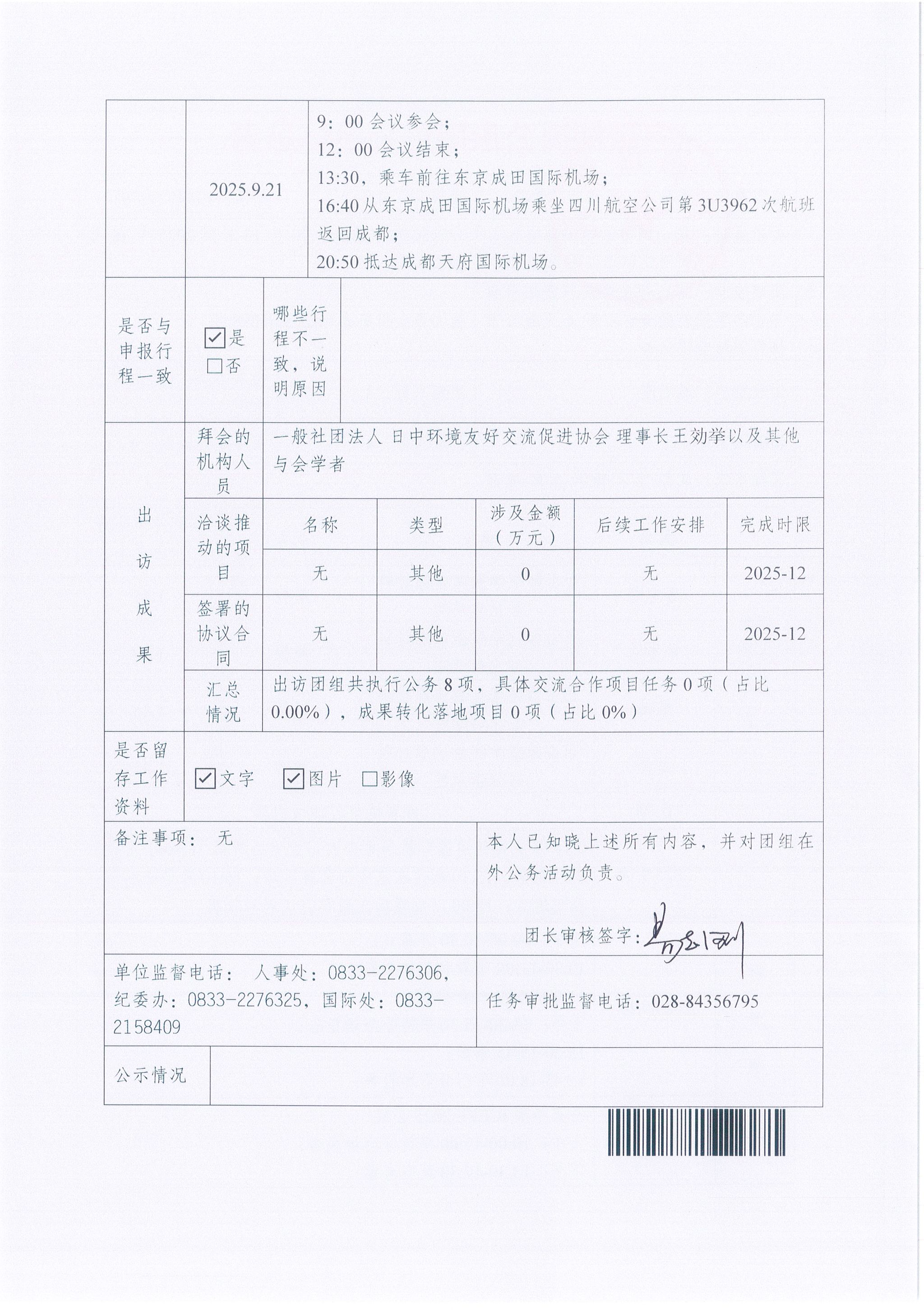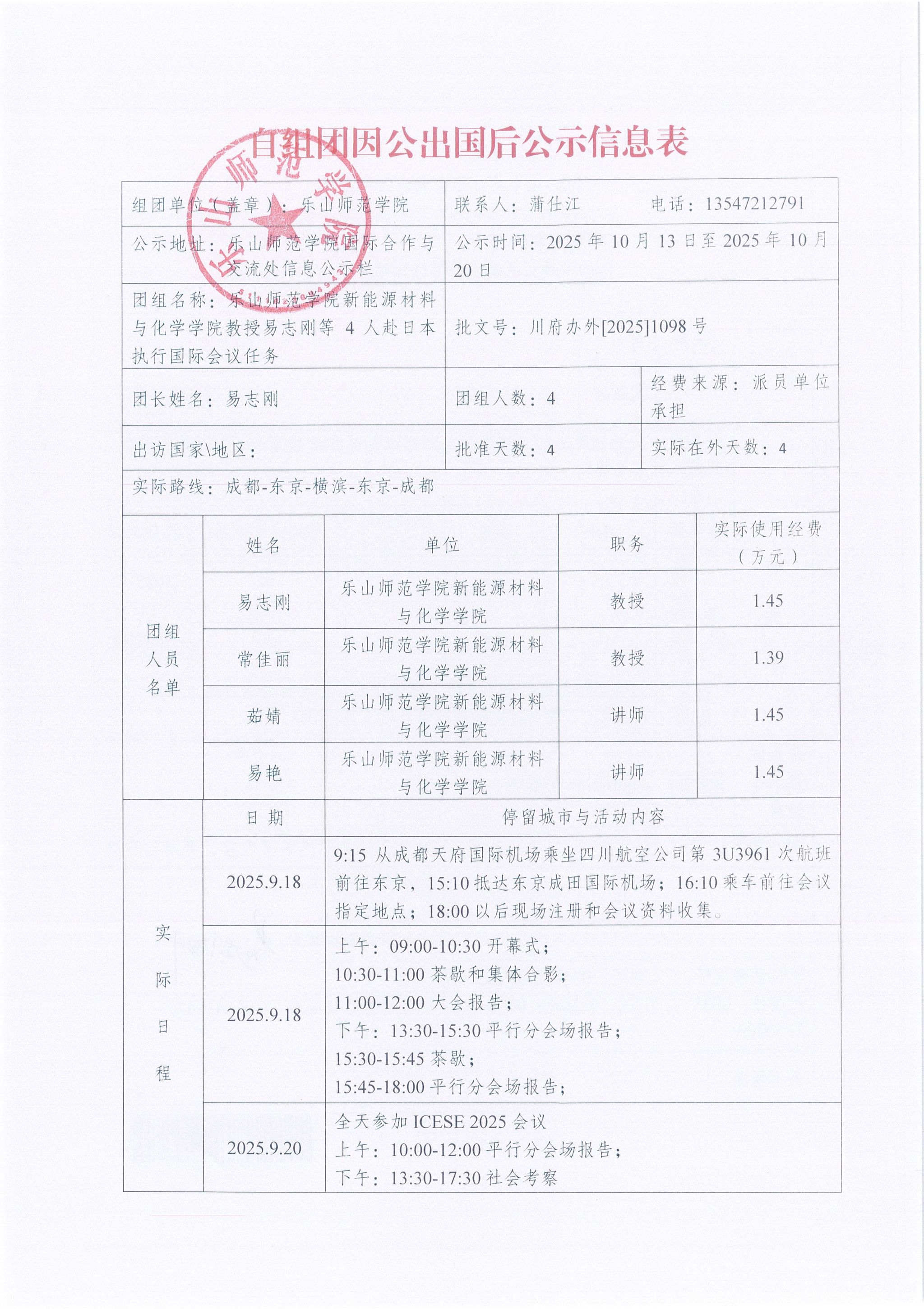 自组团出访后公示信息表-易志刚等四人赴日本参加国际学术会议